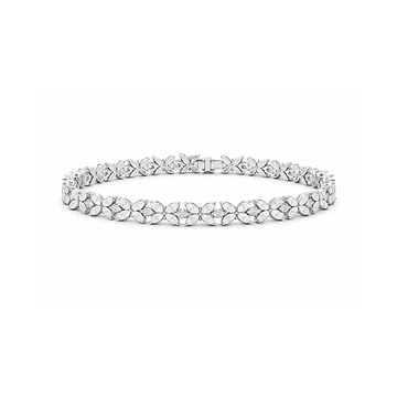 Exuding pristine simplicity, each round cut diamond featured in this tennis bracelet has been selected...