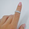 Think rich luxury when you see these elongated oval cut lab diamonds surround this gorgeous ring, available in 18K white gold, rose gold, yellow gold, or platinum. An elegant glisten per each diamond is our standard, thanks to our trained gemologist who inspect and hand select each to ensure color F+ and VS+ clarity. For this particular band, HauteCarat offers several carat weights of our ethical lab diamonds to create your dream bling.
